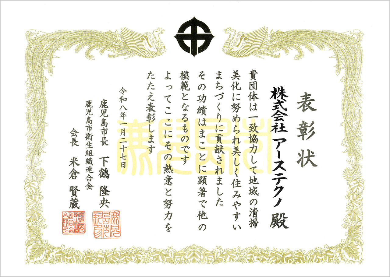 長年にわたるこうした取り組みが評価され、第66回鹿児島市環境衛生大会において表彰を受けました。